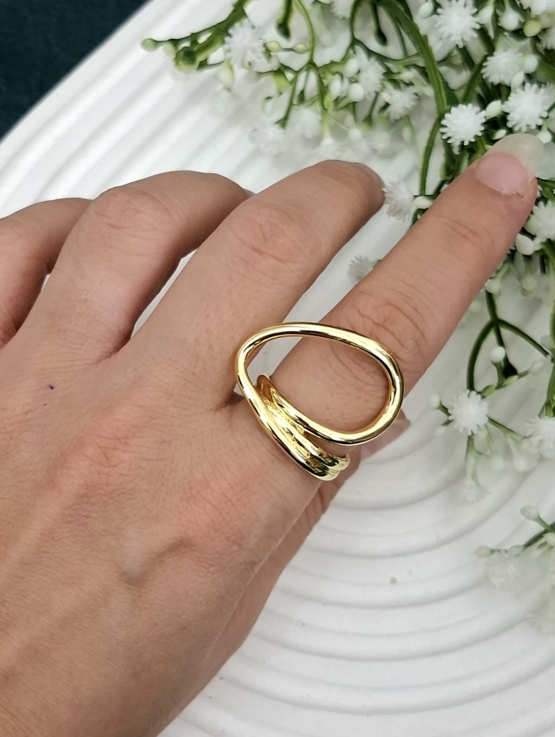 اگر دنبال انگشتری هستی که با ظاهر خاصش همه نگاهها رو جذب کنه، این انگشتر فشن طلایی با آبکاری رادیوم دقیقاً برای تو ساخته شده.