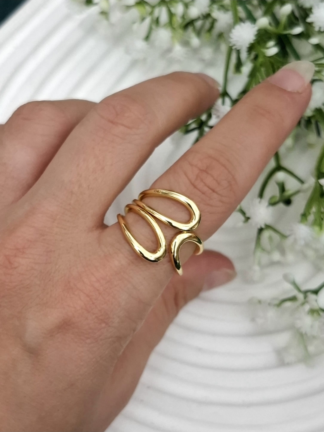 اگر دنبال انگشتری هستی که با ظاهر خاصش همه نگاهها رو جذب کنه، این انگشتر فشن طلایی با آبکاری رادیوم دقیقاً برای تو ساخته شده.