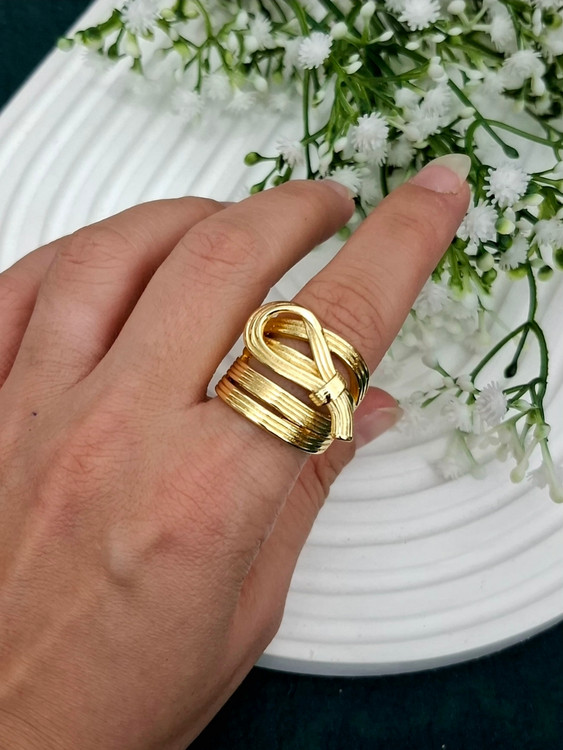 اگر دنبال انگشتری هستی که با ظاهر خاصش همه نگاهها رو جذب کنه، این انگشتر فشن طلایی با آبکاری رادیوم دقیقاً برای تو ساخته شده.