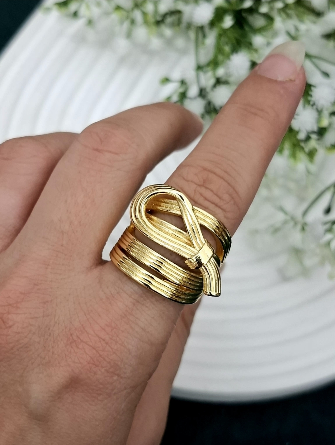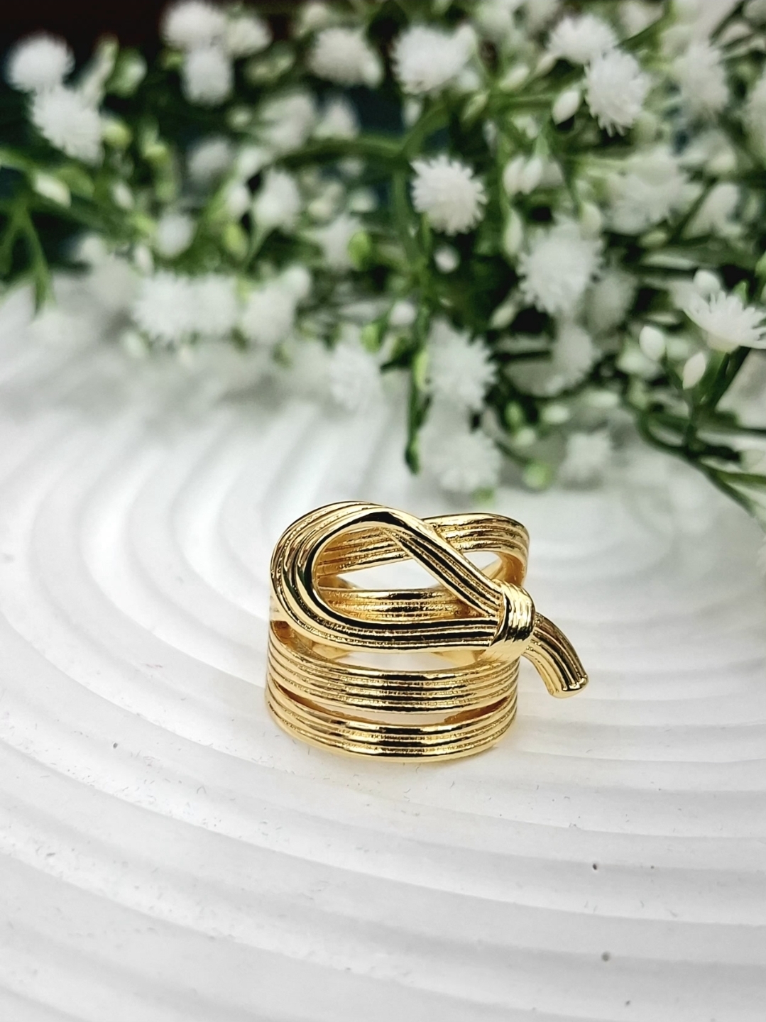 اگر دنبال انگشتری هستی که با ظاهر خاصش همه نگاهها رو جذب کنه، این انگشتر فشن طلایی با آبکاری رادیوم دقیقاً برای تو ساخته شده.