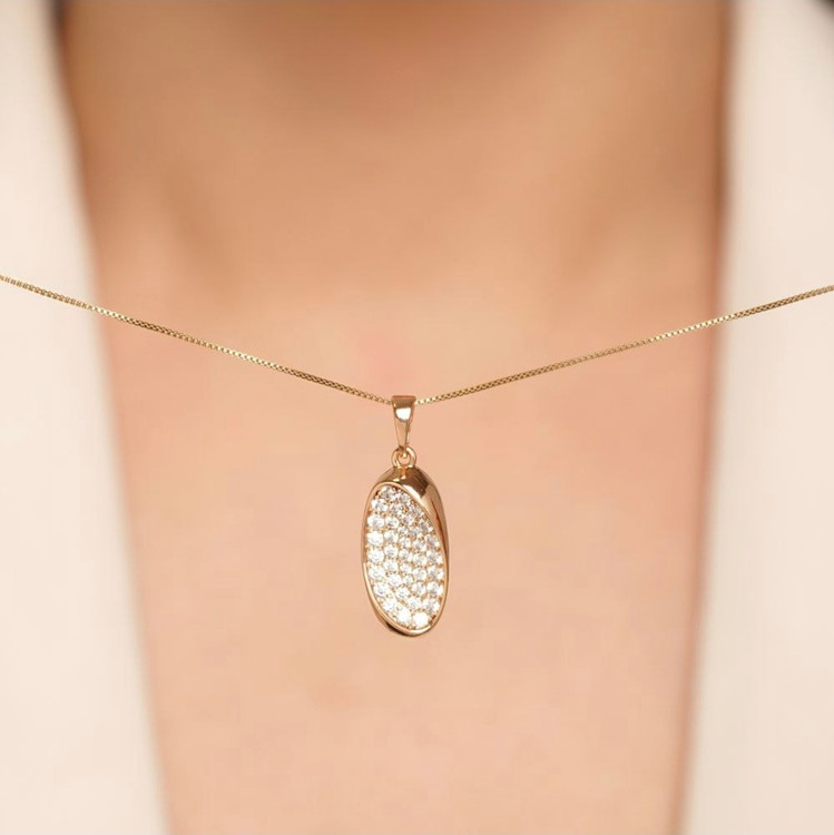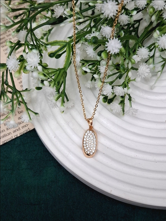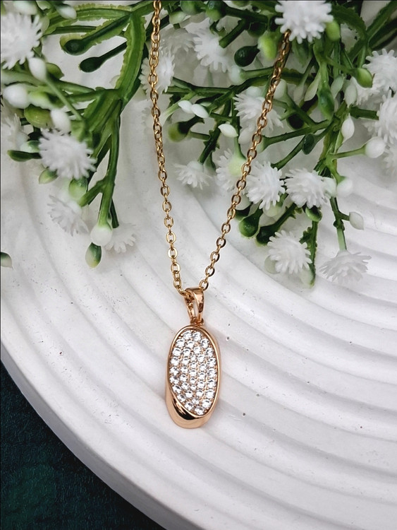 پلاک بیضی فول نگین ژوپینگ با زنجیر استیل