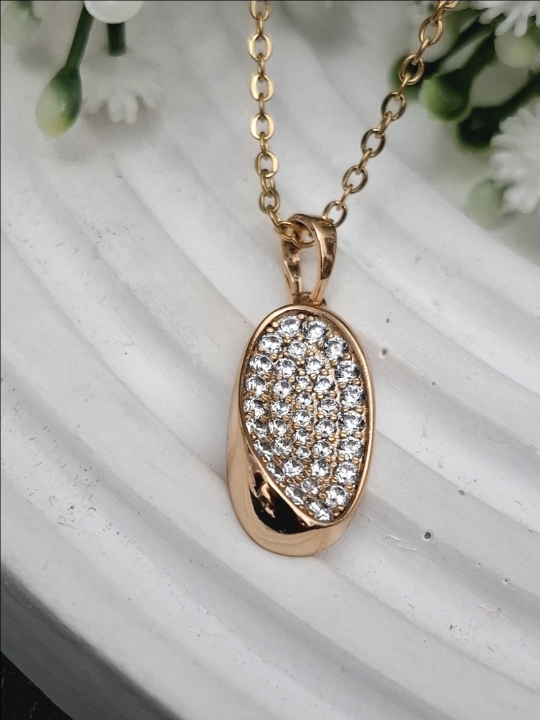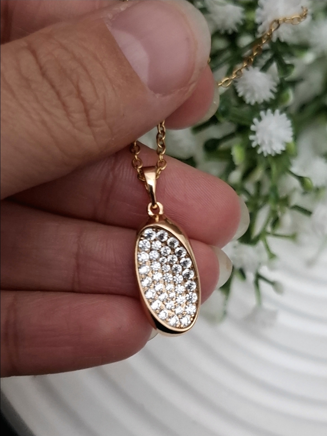 پلاک بیضی فول نگین ژوپینگ با زنجیر استیل