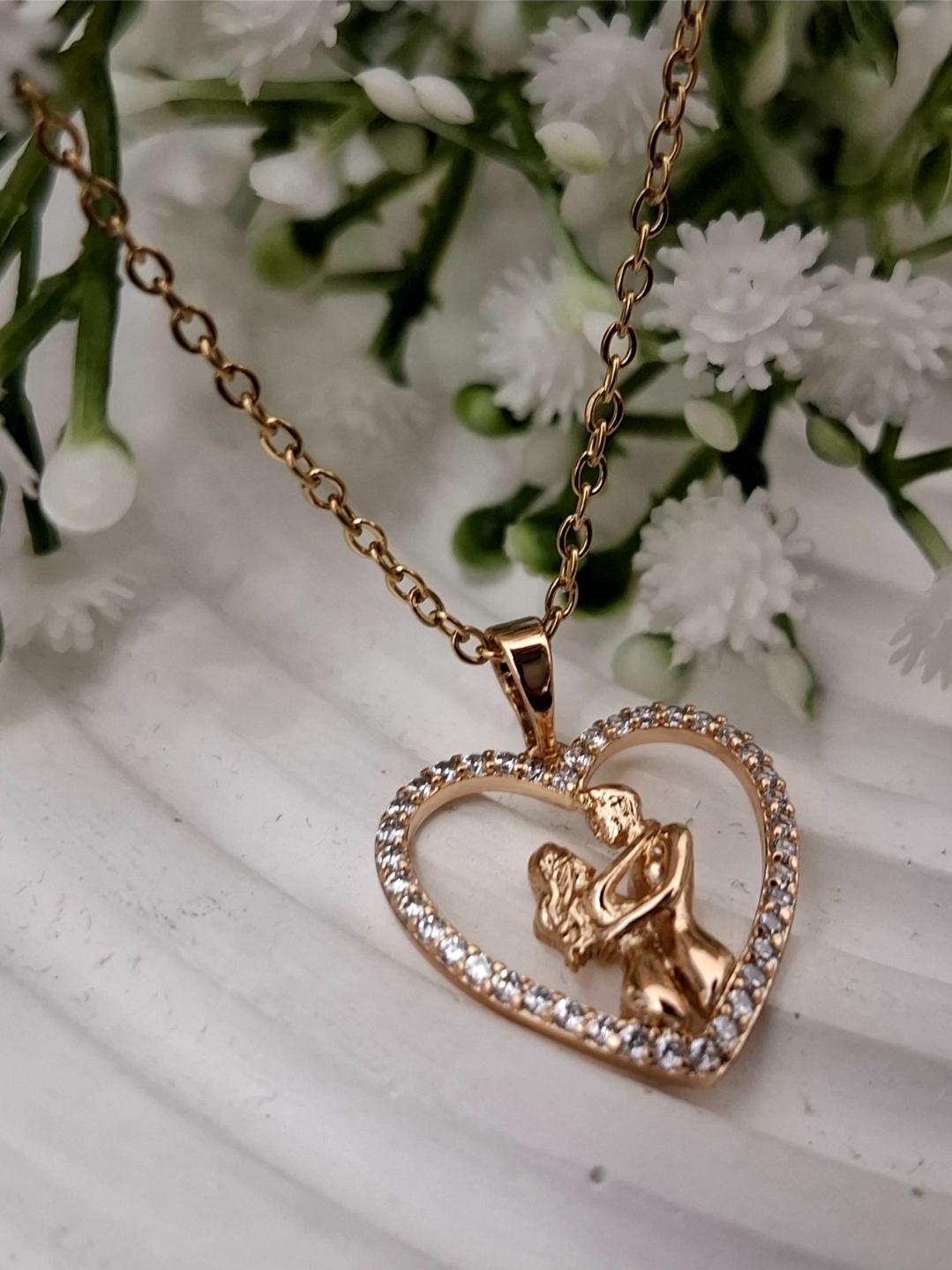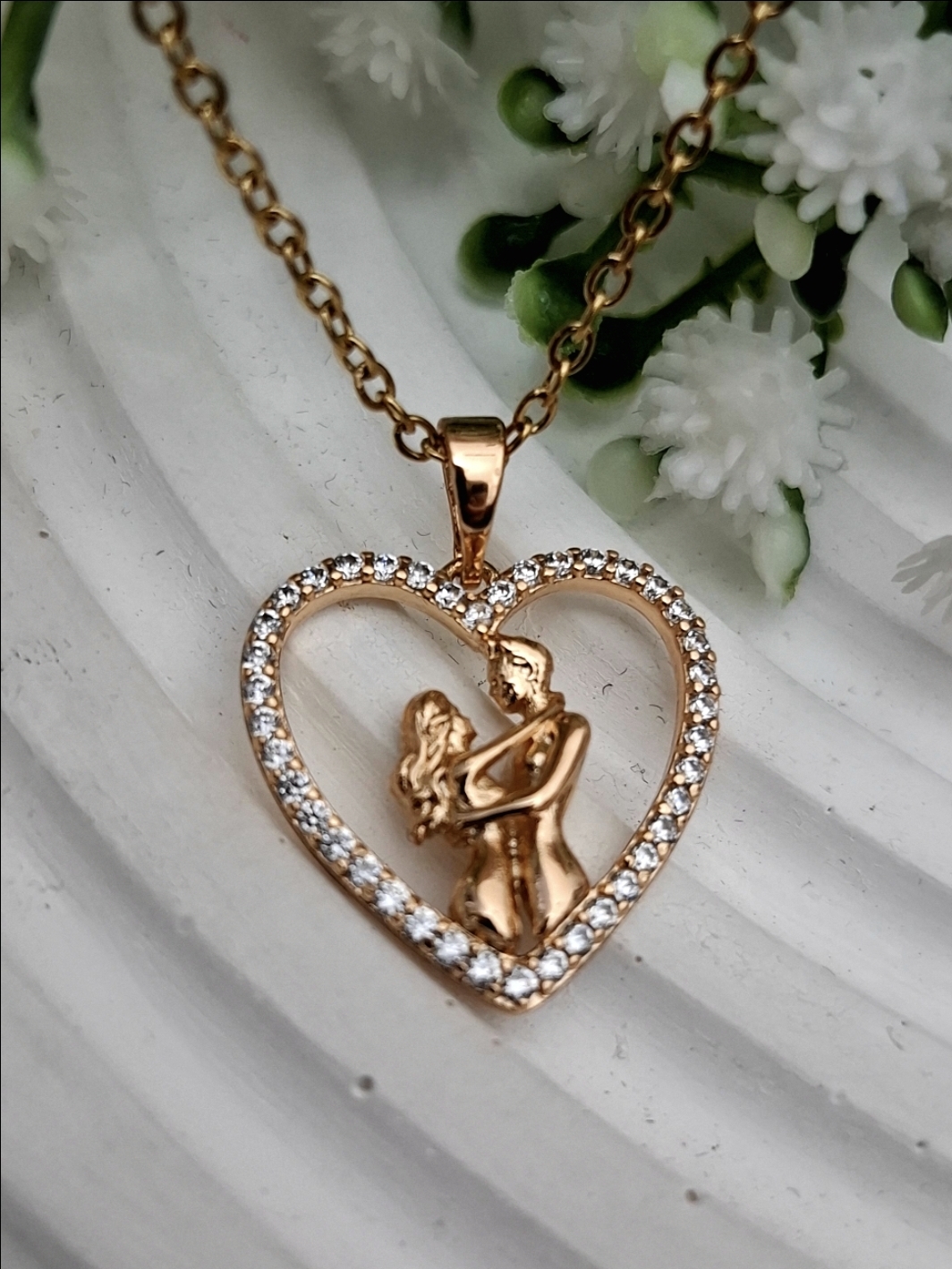پلاک قلب آغوش ژوپینگ با زنجیر استیل