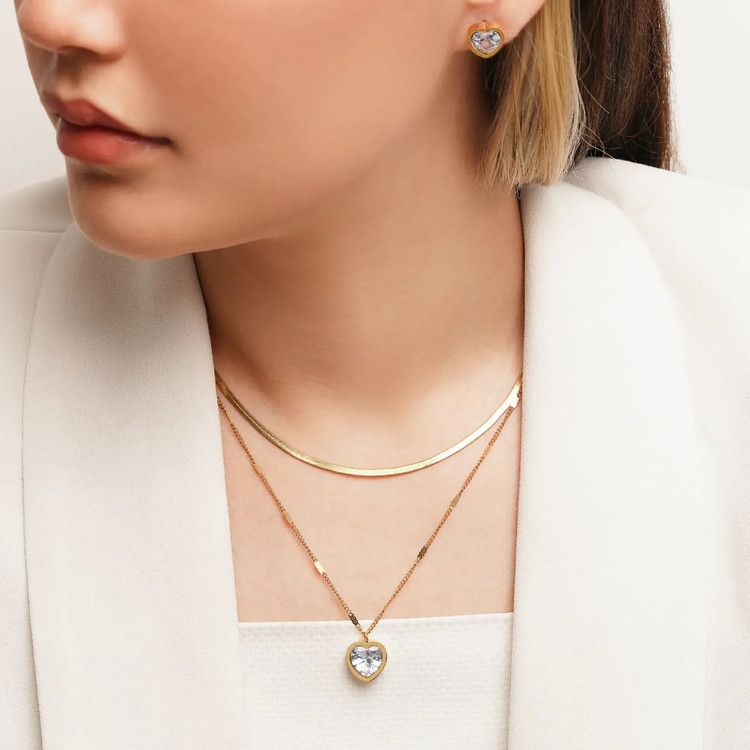 نیم ست قلبی از دولاین تشکیل شده که یک لاین آن زنجیر ماری است و لاین دیگر هم رنجیر معمولی دارد و از آن آویز قلب آویز میشود