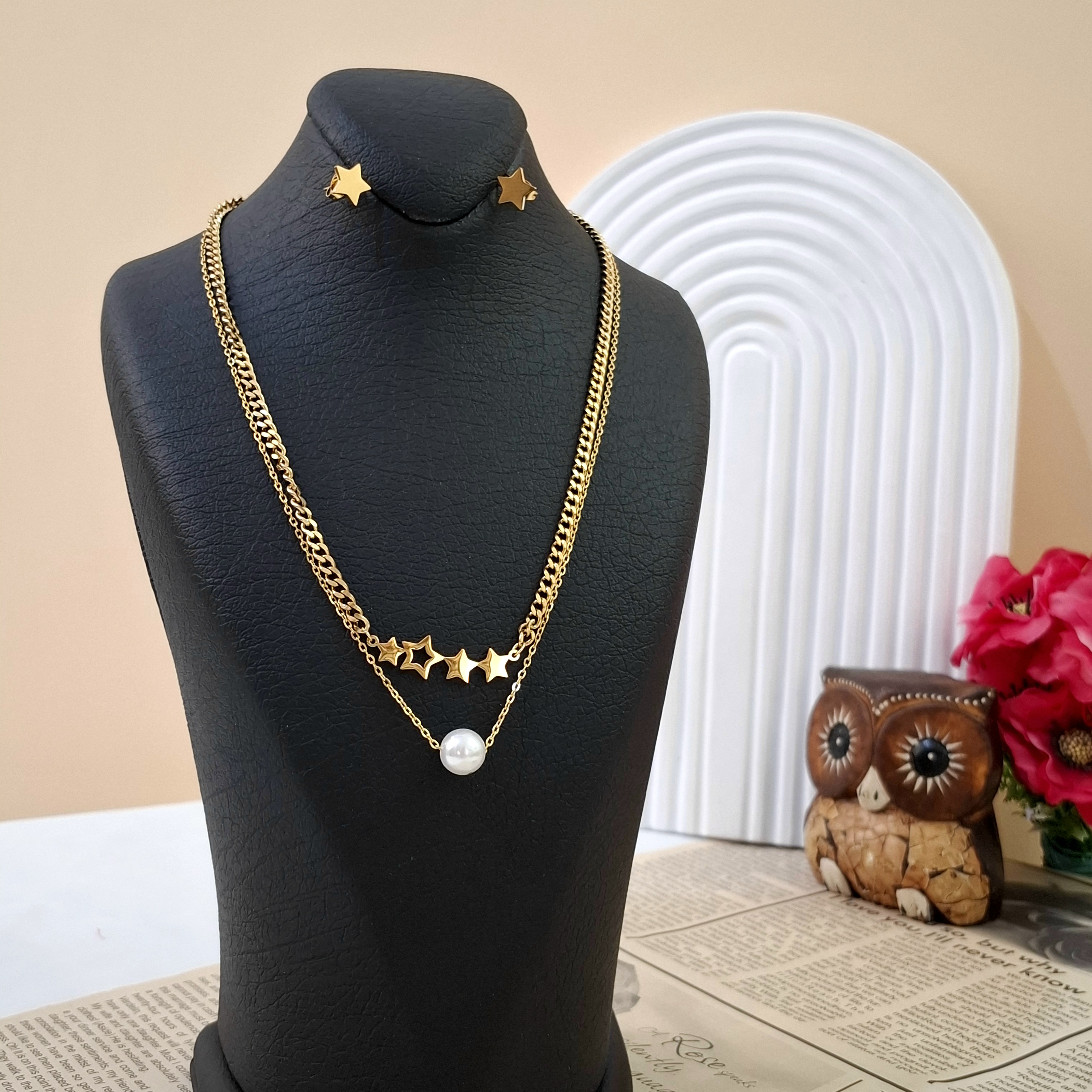 نیم ست ستاره از دولاین تشکیل شده که یک لاین آن زنجیر کارتیر است و لاین دیگر هم رنجیر معمولی دارد و از آن آویز مروارید آویز میشود