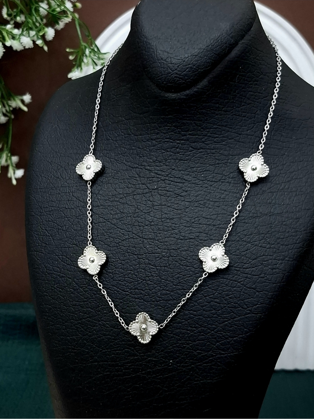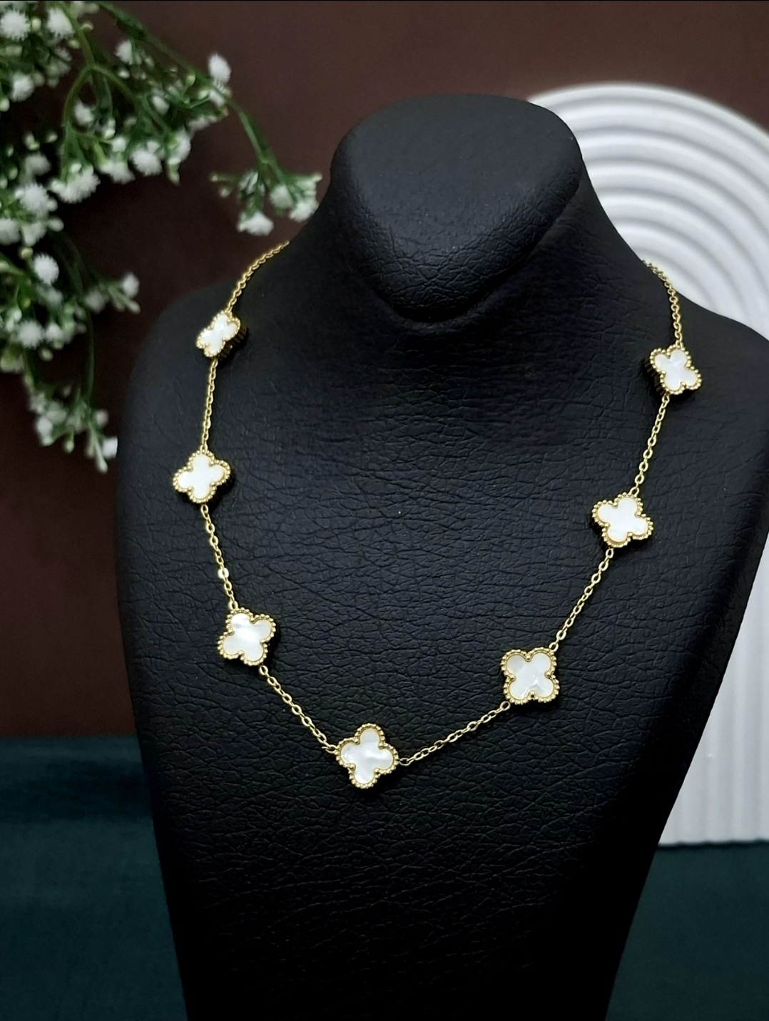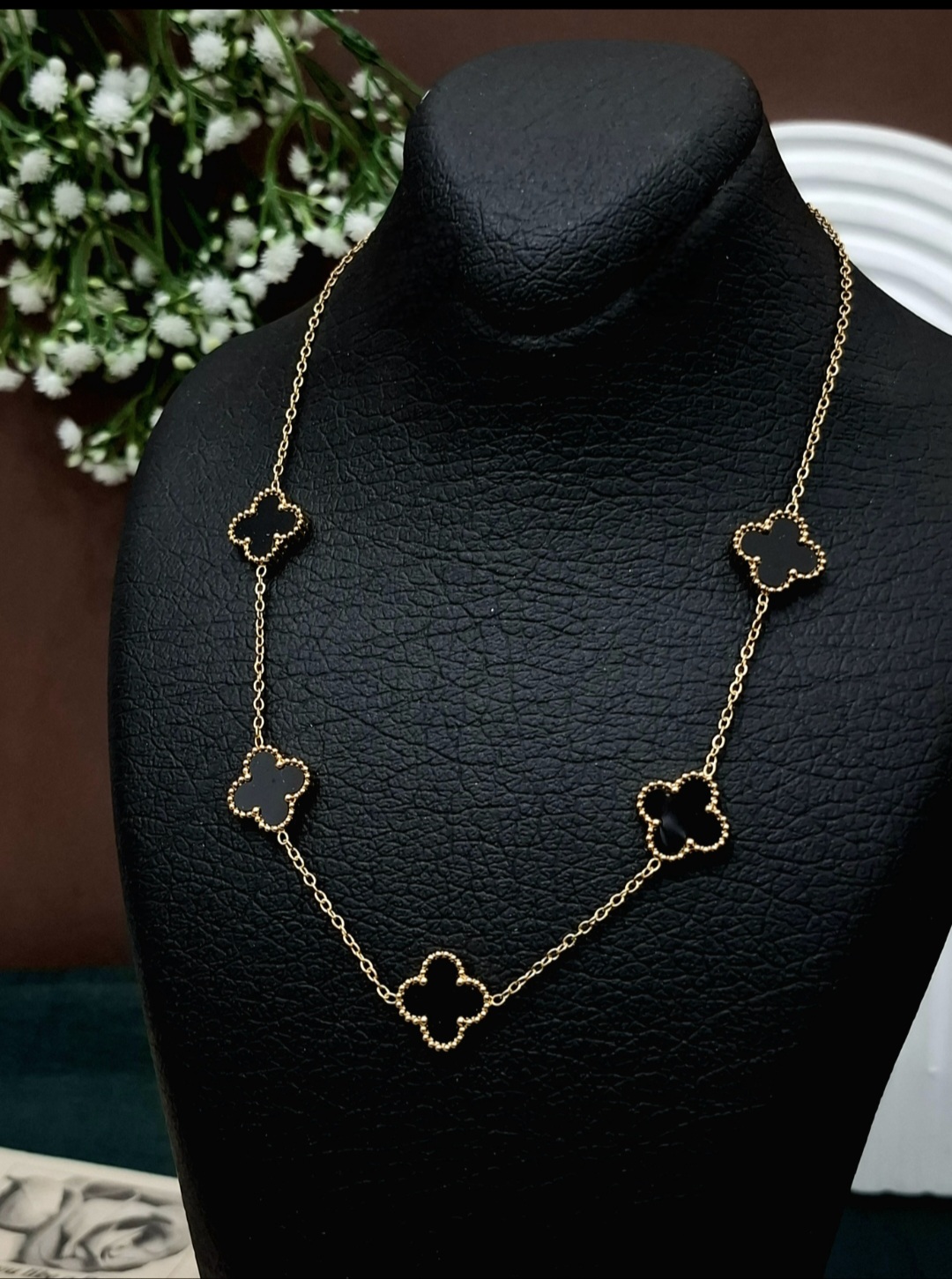 گردنبندهای زنانه با نماد ونکلیف، یکی از پرطرفدارترین مدلها در دنیای مد و اکسسوری هستند. این گردنبندها معمولاً با زنجیر ظریف و پلاکهایی به شکل شبدر طراحی میشوند و جلوهای شیک و ظریف به گردن میبخشند. ترکیب رنگهای مشکی، سفید، صدفی یا قرمز در این طرحها، زیبایی خاصی به استایل میدهد.